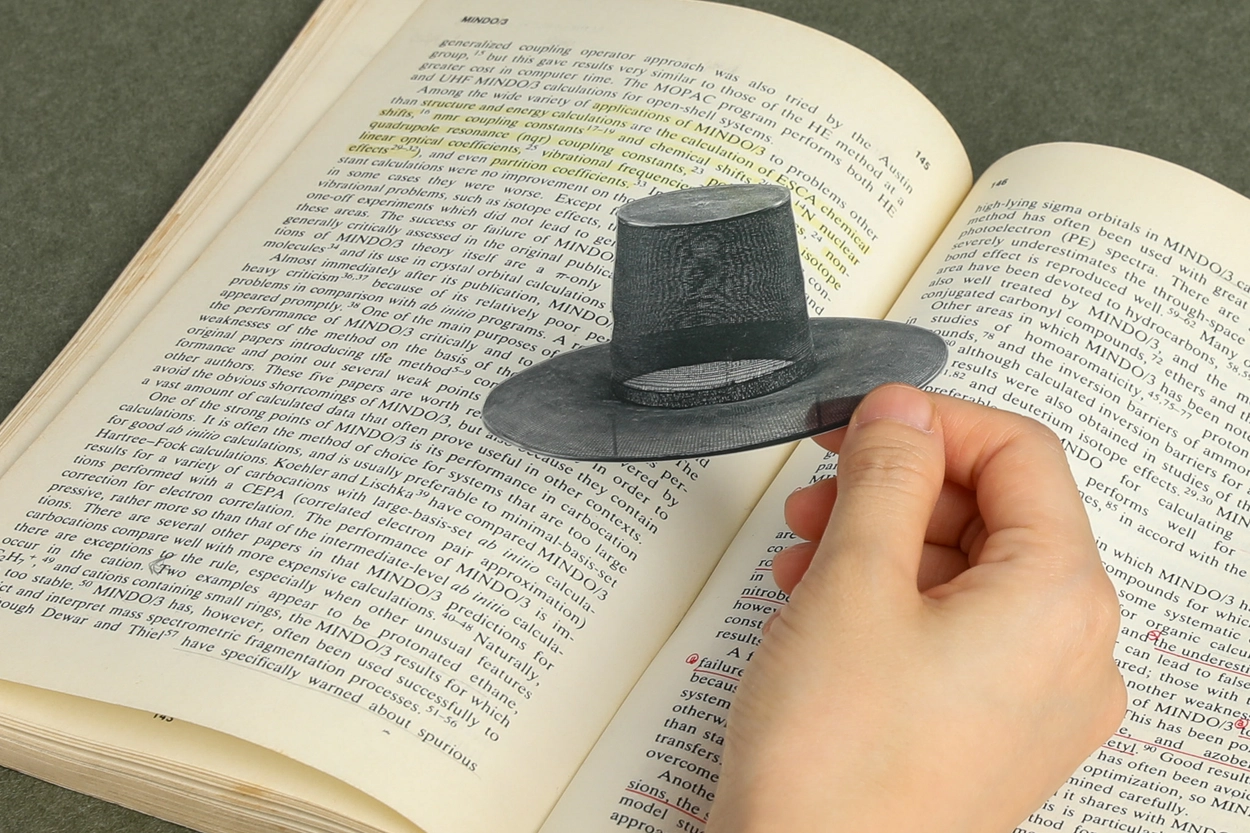 가장 일반적인 형태의 갓입니다. 말총이나 대나무를 머리카락처럼 가늘게 만든 세죽사로 만들어요.